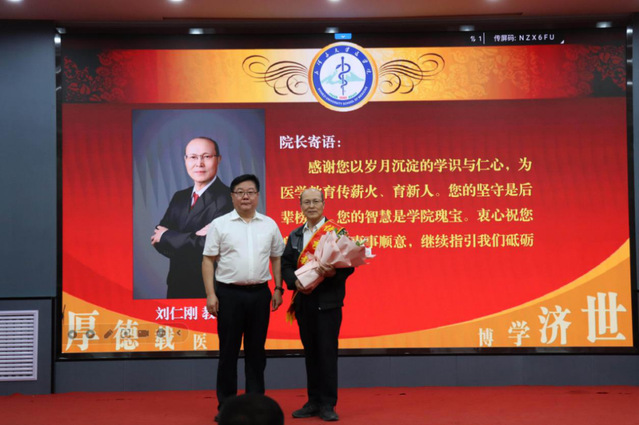 第二环节“岁月如歌,荣光绽放”由做爱自拍 工会副主席郅洁老师主持。生理教研室刘政江教授作为退休教师代表,深情回顾了自己数十载的执教生涯,言语中充满了对学院的深厚情感与对后辈的殷切嘱托。学生代表随后上台,用真挚的语言表达了对恩师们无私奉献的感激与不舍,并送上全体学子最美好的祝福。新进教师们手捧鲜花,向为学院发展倾注毕生心血的前辈们致以最崇高的敬意。李浩老师一曲深情动人的《老师,我总是想起你》,更是将现场的感恩与惜别之情推向高潮。随后马克涛院长代表学院向所有荣休教师致感谢辞,高度赞扬了他们立德树人、潜心治学的卓越贡献,并祝愿他们退休生活幸福安康。