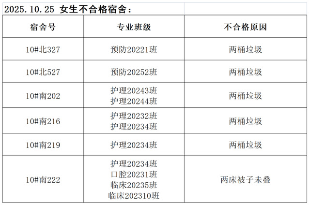 整洁的宿舍,不仅仅是一种外在的表现,更是一种内在的修养。宿舍文明需要我们每个人共同的努力和维护,做好个人卫生,积极打扫宿舍。希望优秀的宿舍继续保持,也希望需要改进的宿舍能够努力向优秀宿舍学习,让我们共同来打造优秀的宿舍环境吧!