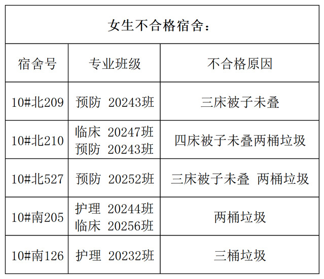 需改进的宿舍公示: