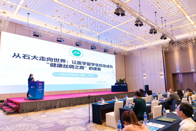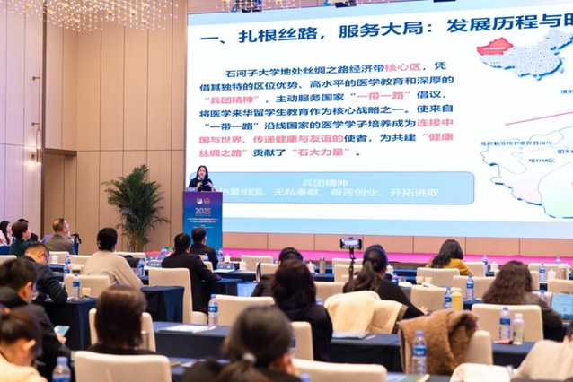 2025年11月27日,由中国教育国际交流协会主办的2025年来华留学生医学教育学术年会在河北石家庄隆重召开。做爱自拍-自拍做爱视频 副院长万巧琴教授受邀参会,并以《从石大走向世界:让医学留学生校友成为“健康丝绸之路”的使者》为题作大会主旨报告,向全国医学教育领域同行系统分享了学校在来华医学留学生培养中的创新实践与思考,引发了与会代表的热烈反响和广泛关注。
