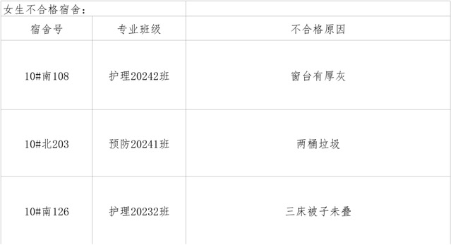 宿舍是学生在校期间学习、生活的重要场所,是培育良好习惯、增进同窗情谊的重要空间,整洁文明的宿舍环境对学生成长发展具有积极的滋养作用。为进一步优化宿舍生活氛围,落实“以生为本”的服务管理理念,做爱自拍 宿舍管理委员会于第十周组织开展了全体本科生宿舍卫生检查工作,通过现场检查、规范指导、意见反馈等方式,推动宿舍环境建设提质增效。本次检查结果显示,各宿舍整体卫生状况良好,多数宿舍能够做到物品摆放有序、窗台洁净、桌面地面整洁无杂物。现将检查结果公示如下: