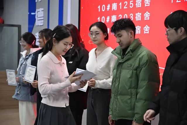 表彰环节结束后,换届聘任仪式正式开始。现场宣读了新一届宿管会任职名单。朱伟娟老师为宿管会主席团颁发聘书,刘蒙恩老师为各部门部长颁发聘书。一纸聘书既是认可与肯定,更是责任与期许,新一届成员们表示将以热忱守护宿舍阵地,传递校园温情。
