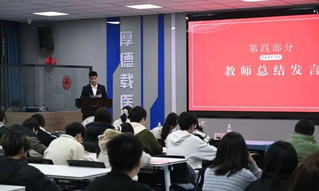 最后,刘蒙恩老师作总结发言。他首先对在上一届宿管会工作中付出辛勤努力的全体成员表示衷心感谢,对获奖宿舍的优异表现给予高度评价,同时为新一届宿管会成员指明工作方向:要坚守安全底线、做细服务细节、凝聚团队合力,将宿舍打造成安全有序、温暖有爱的青春港湾。