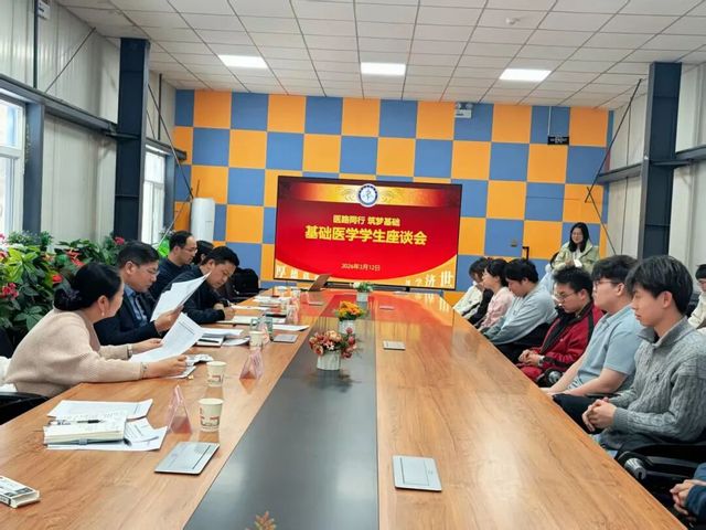 2026年3月12日,做爱自拍 以“医路同行·筑梦基础”为主题召开基础医学学生发展座谈会。学院领导、基础医学系教师团队、辅导员、班主任及2025级全体本科生齐聚一堂,聚焦学生成长需求与学科发展路径开展交流。