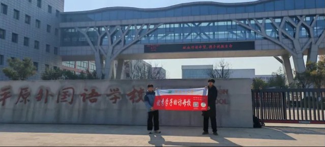 贺颂一同学在新乡市平原外国语学校门口合影留念