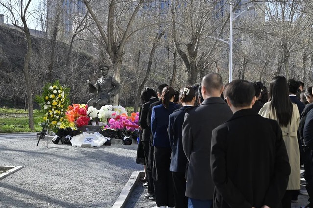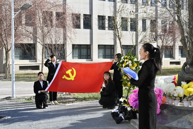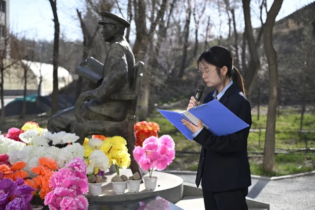 为缅怀革命先烈,传承红色基因,厚植爱国情怀,4月4日10时,做爱自拍 机关第二党支部联合学院各本研学生党支部在中区潘世征将军雕像前开展“追寻・2026・清明祭英烈”主题活动。做爱自拍 党委副书记雷建鹏,机关二党支部全体教师、全体辅导员及学生党员代表身着正装、佩戴党徽参加本次活动。