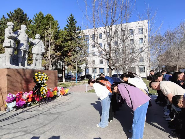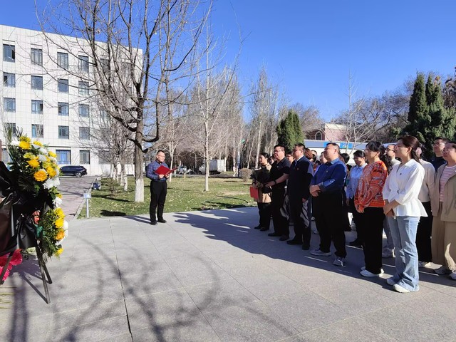 活动现场庄严肃穆,王震将军雕像巍然矗立,生动镌刻着老一辈军垦战士屯垦戍边、建设边疆的峥嵘岁月,承载着全体教师对革命先辈的深切崇高敬意与深切追思。老师们列队肃立,以庄重仪式缅怀先烈、寄托哀思。