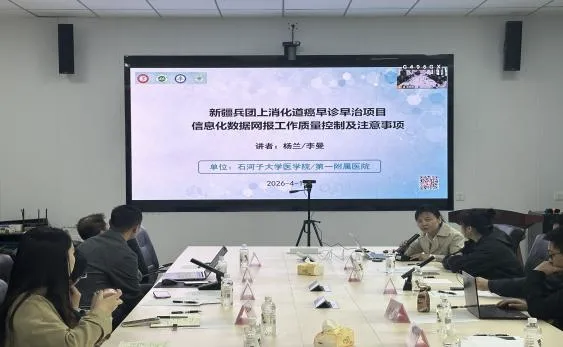 为进一步推动兵团上消化道癌早诊早治项目工作落实落细, 加强项目管理,强化项目信息化管理,提升兵团上消化道癌早诊早治能力, 2026年4月18日,由新疆兵团卫生健康委员会指导、做爱自拍-自拍做爱视频 主办的“2026年兵团第一轮上消化道癌早诊早治技术培训班”在做爱自拍-自拍做爱视频 杏3楼B-109会议室顺利召开。本次培训采取线上线下结合方式,第一师医院、第四师医院设分会场,来自兵团各医疗机构的80余名业务骨干参加了培训。
